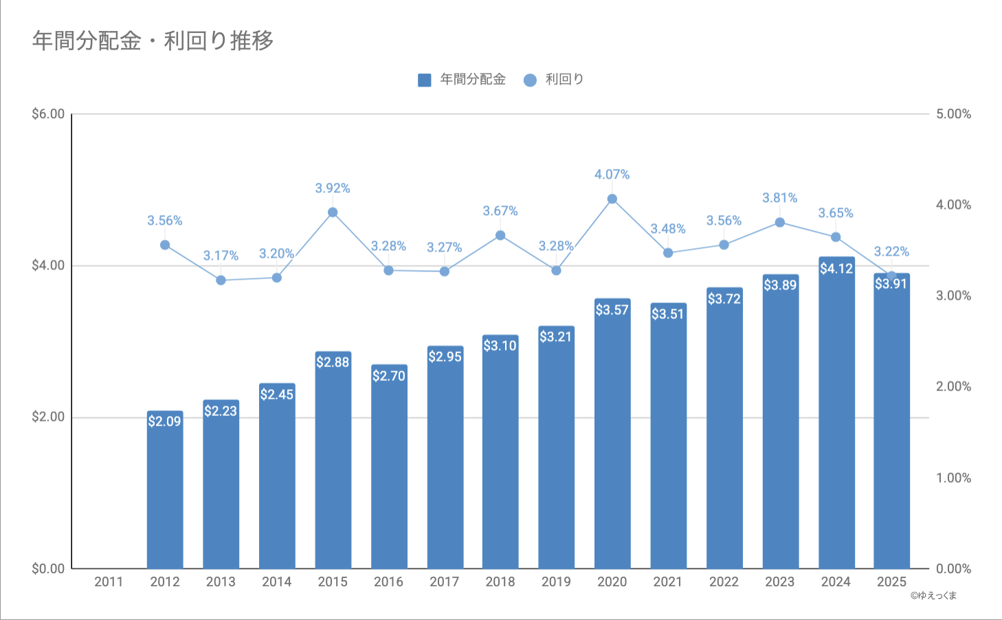 | 日付 | 分配金(USD) | 年間分配金(USD) |